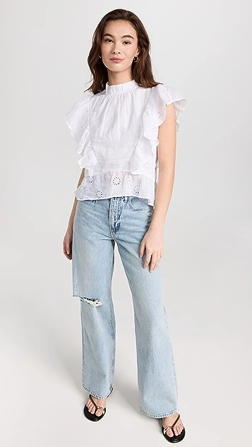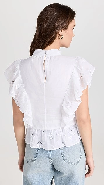 - Eyelet trim and flutter sleeves