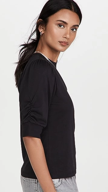 An essential FRAME tee gets a romantic update with puff sleeves and ruched cuffs. Easy to pair with anything from laid-back denim to dressy skirts, it’s a top you’ll spend a lot of time with.