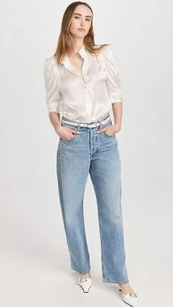 - Elbow-length puff sleeves with button cuffs
