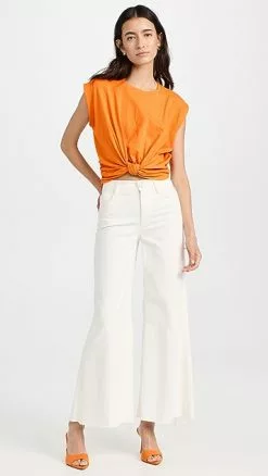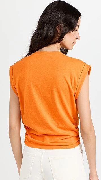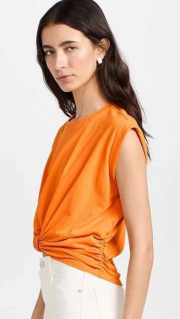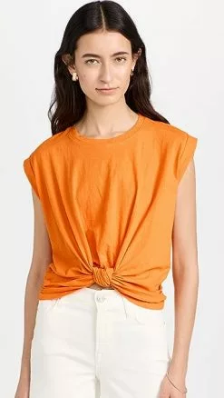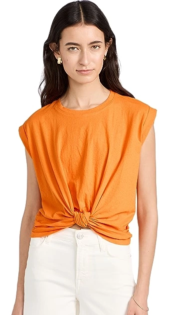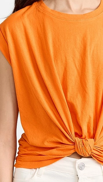 A comfortable FRAME muscle tee for your off-duty wardrobe, imbued with warm color and accented with a knot at the hem. Lean into the sporty feel of this piece by pairing it with sweatpants or leggings.