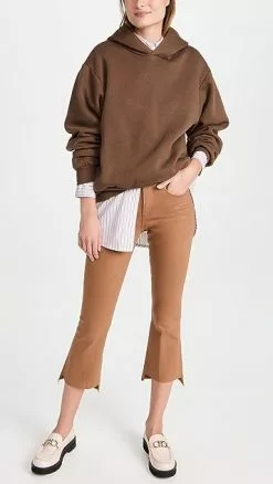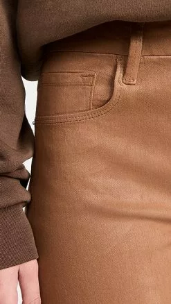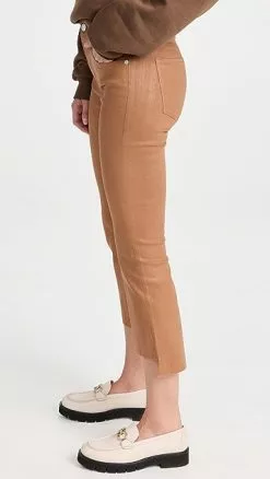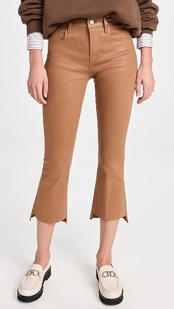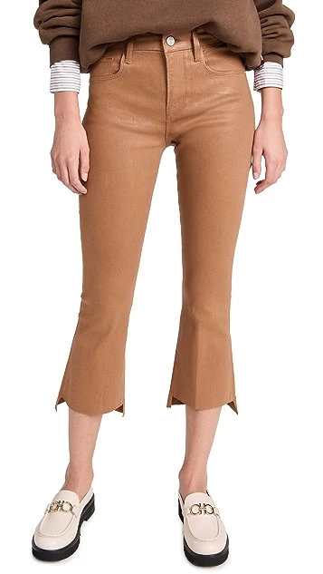 Do denim differently in these cool and unique FRAME jeans, which feature a waxy, leather-like sheen, a light shade of brown, and a cropped step hem. Tidy blouses and casual tees will both work well with this pair.