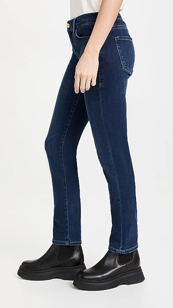 Offered by the denim experts at FRAME, these mid-rise jeans feature a slim-straight fit and a deep shade of indigo that’s lightened by a touch of fading.