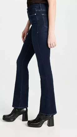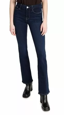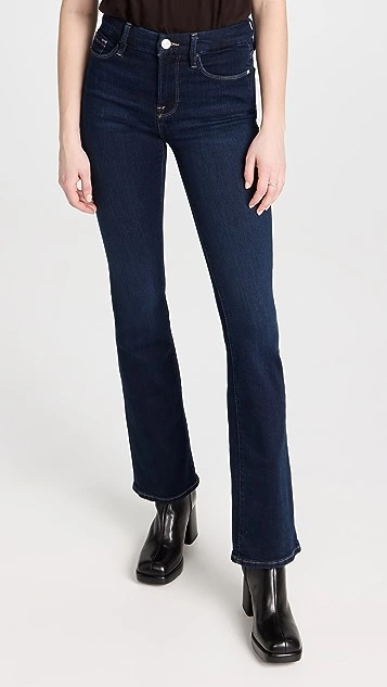 No-fuss denim with polished style is the name of the game with these FRAME jeans, which feature dark-blue, super-stretch fabric and a subtle flare at the hem.