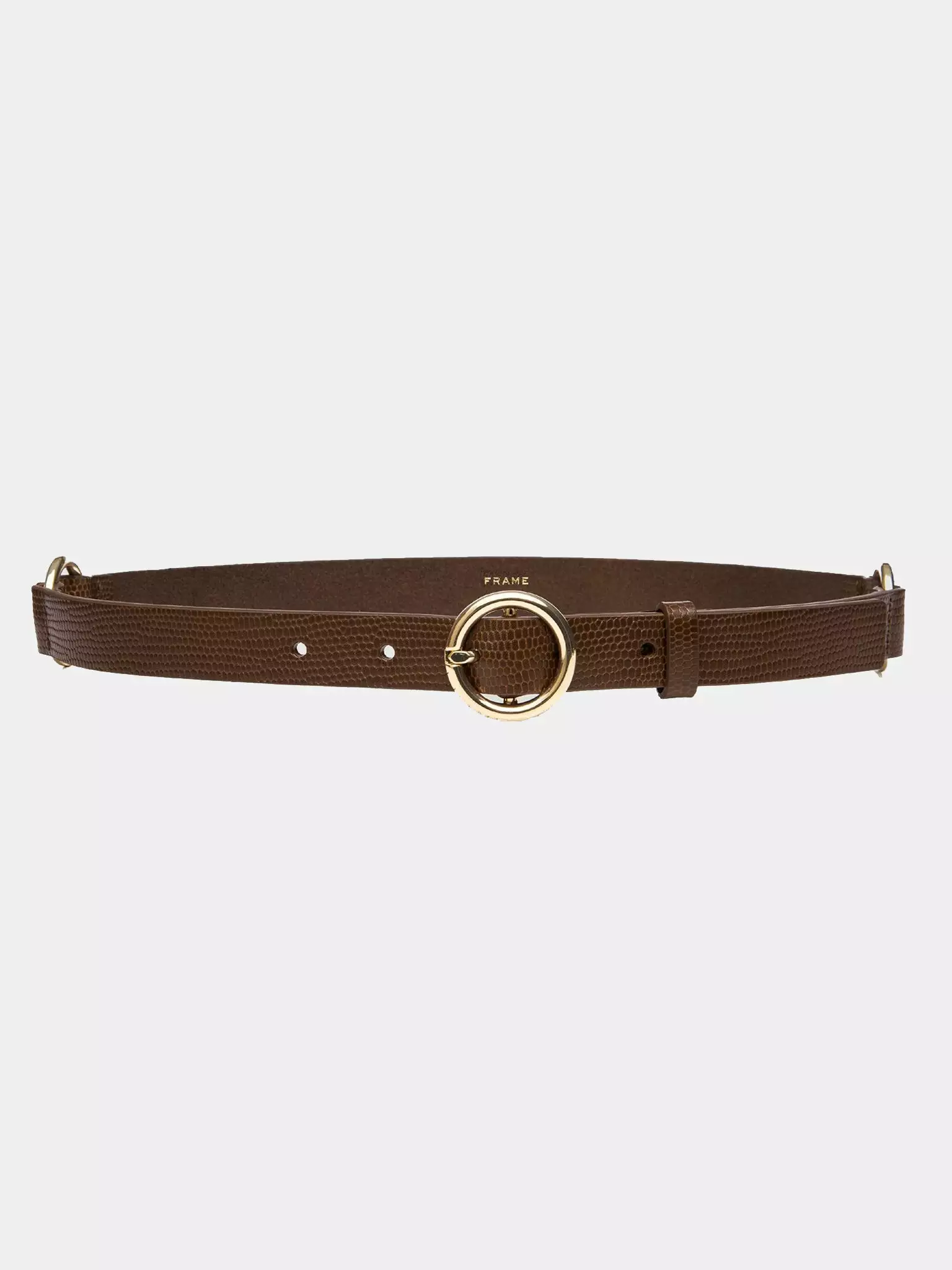 The Frame Le Petit Triple Circle Chocolate Lizard Belt finishes any outfit with crisp details and understated style.