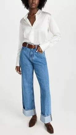 Wide, fixed cuffs add to the tidy and polished look of these FRAME wide leg jeans. Loafers and a white button down shirt will be perfect complements for this pair.